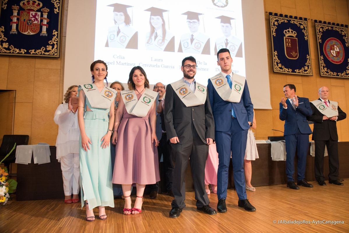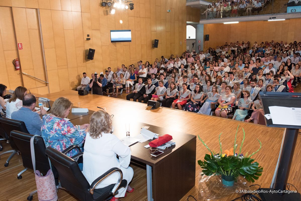 La alcaldesa de Cartagena, Ana Belén Castejón, acudió al acto de imposición de becas a los 53 alumnos de la promoción 2014-2018 de la Escuela de Enfermería. La graduación se celebró en el Paraninfo de la UPCT - Campus Muralla del Mar.