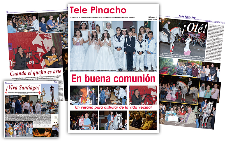 La publicación que edita la Asociación Cultural y Deportiva 'El Pinacho' y elabora 21DEhoy agenCYA ha lanzado el segundo número con las noticias de la Villa y Condado de Santa Lucía, Los Mateos, Lo Campano y Barriada Santiago. Hay reportajes de la hoguera de San Juan, Cruces de Mayo, Fiestas del Verano, procesión de la Virgen del Carmen, Fiestas de Santiago Apóstol y entrevistas, entre otras noticias.