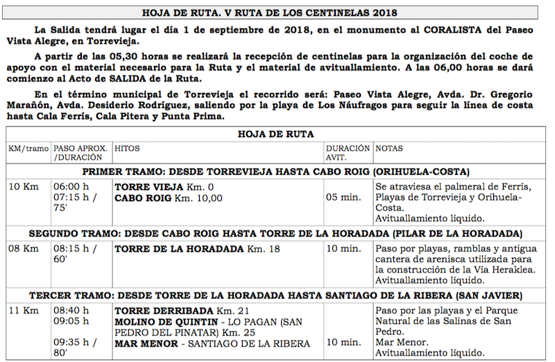 La V Ruta de los Centinelas recorrerá ocho municipios (Torrevieja, Orihuela-Costa, Pilar de la Horadada, San Pedro del Pinatar, San Javier, Los Alcázares, La Unión y Cartagena) y dos comunidades autónomas.
