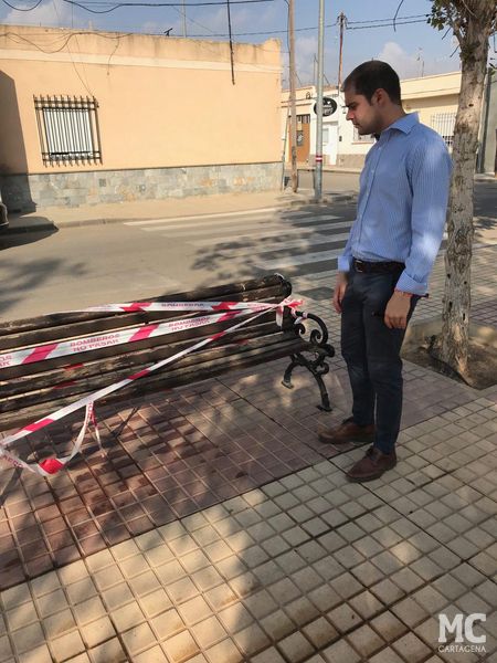 De esta manera, Segado evidenció las denuncias y quejas vecinales ante los numerosos bancos rotos y astillados, faltos en muchos casos de tablones de madera y en los que sobresalen hierros peligrosos; las deficiencias en juegos infantiles, aparatos biosaludables o jardines secos por la falta de riego, entre otros asuntos.