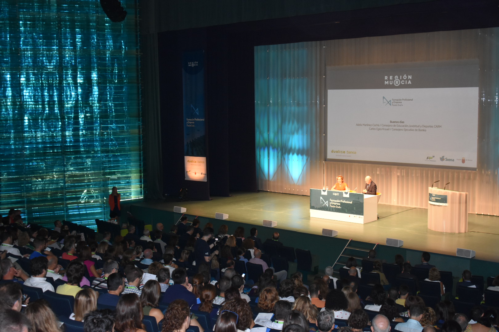 Un total de 650 profesionales asistirán hoy y mañana aI I congreso nacional sobre Formación Profesional Dual que se celebra en el Palacio de Congresos El Batel. La consejera de Educación, Juventud, y Deportes, Adela Martínez-Cachá, que inauguró las jornadas, destacó la “apuesta irrenunciable” del Gobierno regional por la FP Dual.