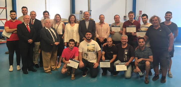 La Directora del SEF, Severa González, ha sido la encargada de realizar la entrega de los diplomas acreditativos a los felices graduados que han obtenido su puesto de trabajo en la compañía Mecánicas Bolea y otras empresas del sector.