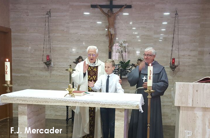 Imagen de la misa oficiada en Cartagena en noviembre de 2016 por el hermano Isidoro Macías Martín, conocido popularmente como el ‘Padre Patera’, y el padre Ángel Maciá