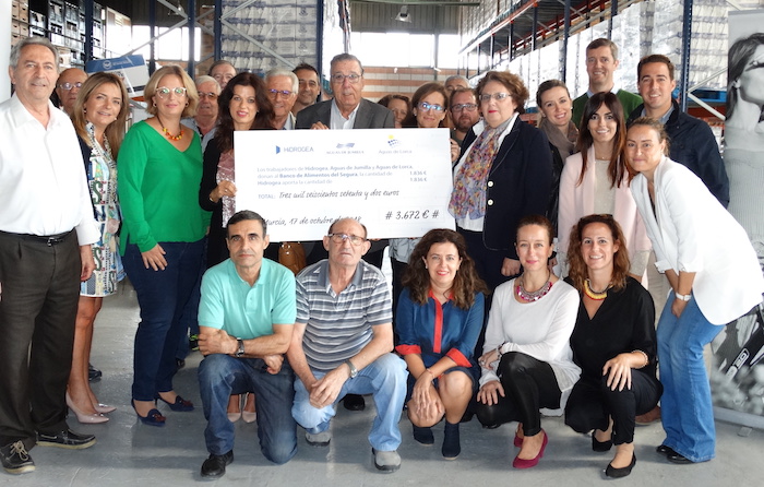 Con esta iniciativa, con la que los empleados de Hidrogea han donado como mínimo un euro al mes de su nómina durante 2017, se han recaudado 1.860 euros que sumados a lo comprometido por la propia empresa ascienden a 3.672€ destinados, por votación de los miembros, al Banco de Alimentos del Segura.