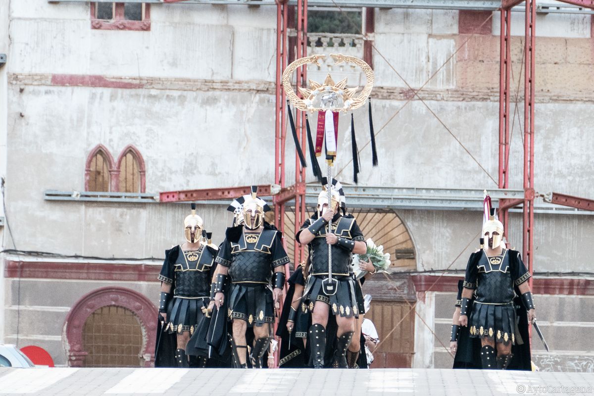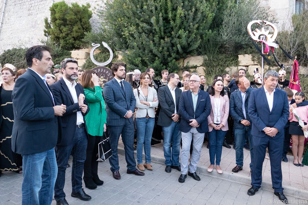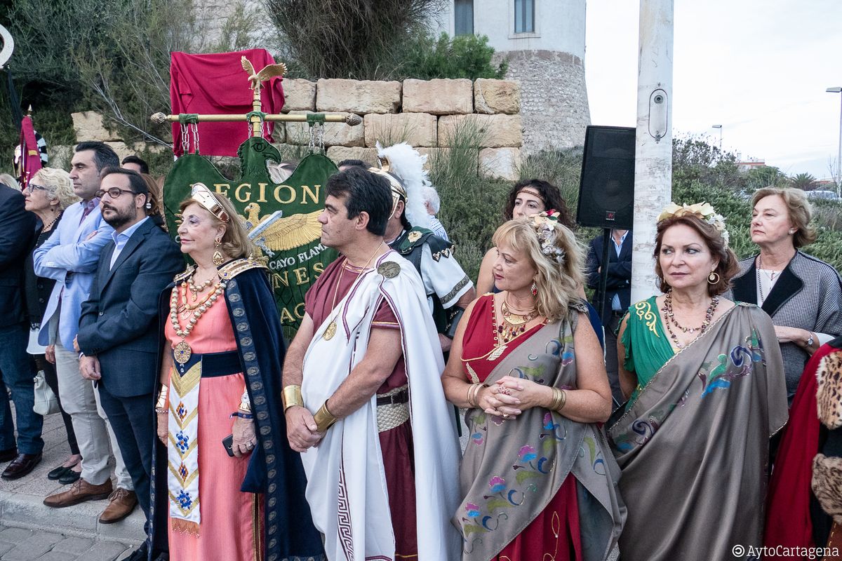 La tropa Lanceros Hoplitas Libios, que Rosa Juaneda gestó en 1992, llegó desfilando en honor a su ‘madre’. Fue la antesala del acto de puesta de largo de la calle que recuerda a una caristmática y luchadora persona fallecida hace una década y que en 2009 fue nombrada Hija Adoptiva de Cartagena con carácter póstumo en 2009.