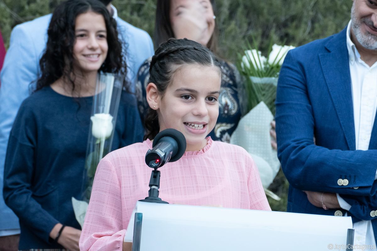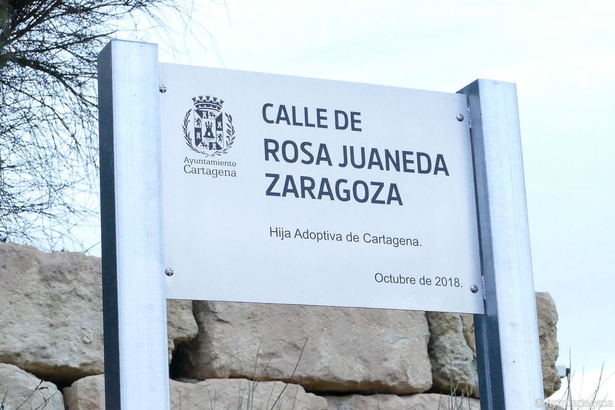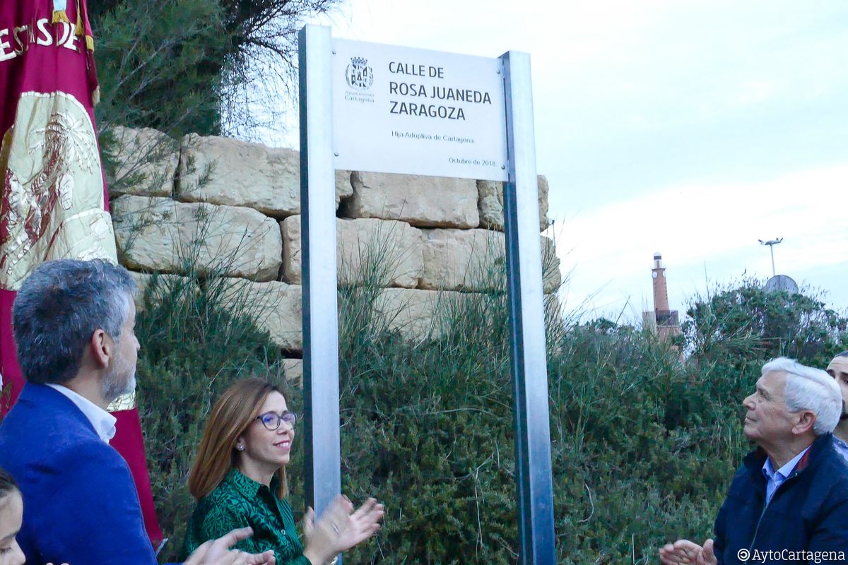 Carlos Sánchez habló de la Rosa madre, a la que le hubiera gustado tener más tiempo, aunque confesó su orgullo al entender la gran pasión que siempre sintió por Cartagena, y que después de diez años desde su fallecimiento, le hubieran dedicado una calle, tan relacionada con la enseñanza, las fiestas, el patrimonio histórico y la semana santa. También asistió el alcalde de Guardamar del Segura (Alicante), lugar por donde llegó a este mundo en 1952 Rosa Juaneda.