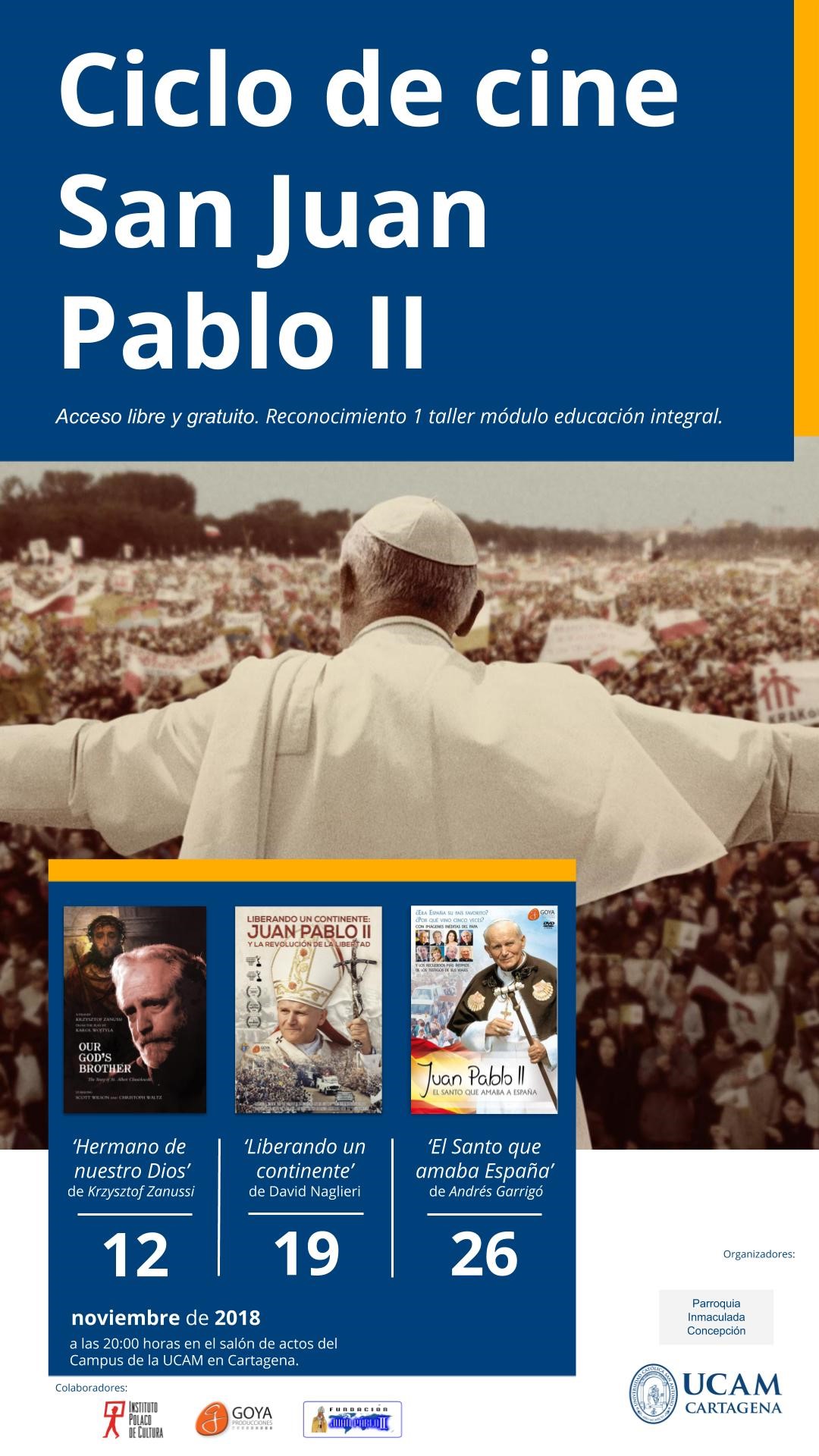 La Parroquia Inmaculada Concepción de Cartagena y la Universidad Católica San Antonio de Murcia (UCAM) organizan un ciclo de cine entorno a la figura de San Juan Pablo II coincidiendo con los 40 años de inicio de su pontificado.
