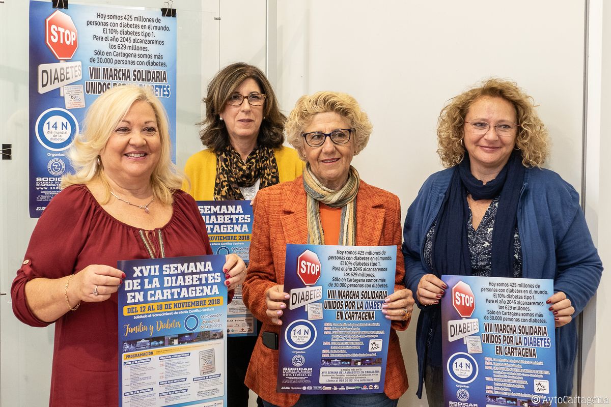 Por su parte, la presidenta de SODICAR, María Dolores García, antes de comenzar a detallar las actividades que se van a desarrollar en Cartagena ha realizado un repaso a la enfermedad, así como los tipos que existen y que tipo de población se ve afectada por ella, sobre todo para hacer hincapié en que “el 80 por ciento de los casos diagnosticados de diabetes tipo 2 se podrían prevenir variando la alimentación y con la práctica de ejercicio.