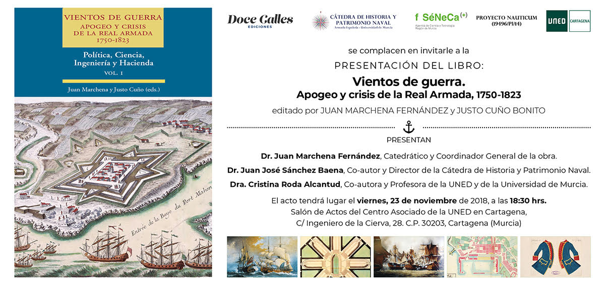 La UNED presentará el 23 de noviembre, a las 18.30 horas, el libro 'Vientos de guerra. Apogeo y crisis de la Real Armada, 1750-1823 ', editado por Juan Marchena y Justo Cuño.