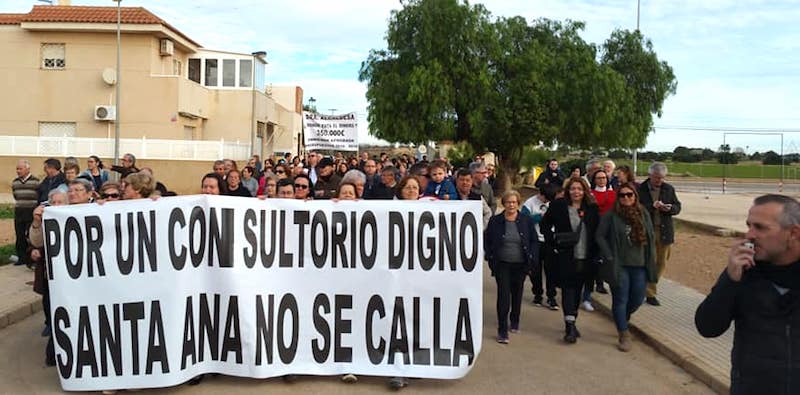 Alrededor de medio centenar de personas se sumaron a la marcha de protesta convocada por la Asociación de Vecinos para reivindicar la construcción del nuevo consultorio médico en el pueblo cartagenero, recordando con una pancarta que en el presupuesto de este año existía una partida de 350.000 euros para ese objetivo.