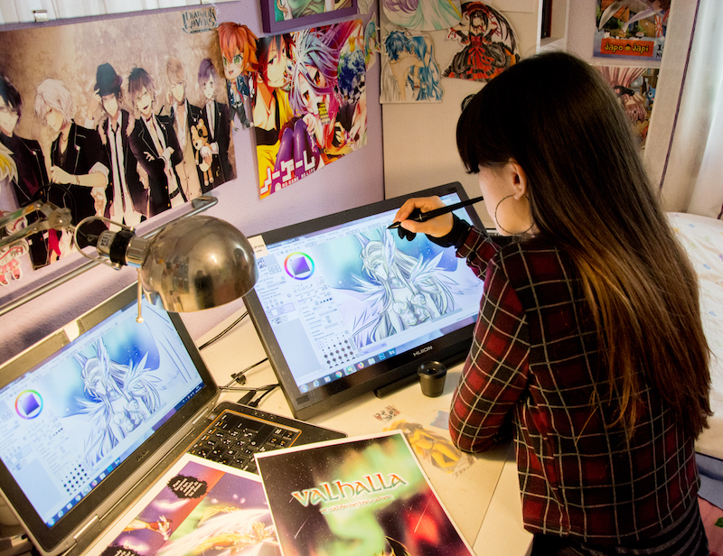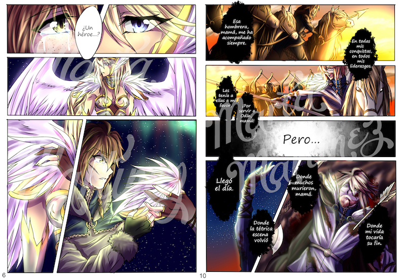 'Valhalla' es el nombre del cómic que ha presentado, en referencia al majestuoso salón ubicado en la ciudad de Asgard que gobierna el dios Odín. "Han sido más de dos meses de trabajo para confeccionar el guión y las viñetas", expone esta joven de 17 años de edad en referencia al su obra. "Investigué y me documenté sobre cómo es este salón en el mundo de la mitología vikinga, siendo el lugar donde van los caballeros que han fallecido y que también sirve luego a los caballeros", añade, explicando que para el guión partió "de una leyenda nórdica en la que creían que las auroras boreales eran el brillo de las armaduras de las valquirias. A partir de ahí, he creado la historia de un guerrero vikingo que ve su vida pasar y que recuerda cómo su padre alcanzó Valhalla. Tardé tres semanas en maquinar la historia y tuve que documentarme mucho, además de coger muchos puntos de vista de blogueros".