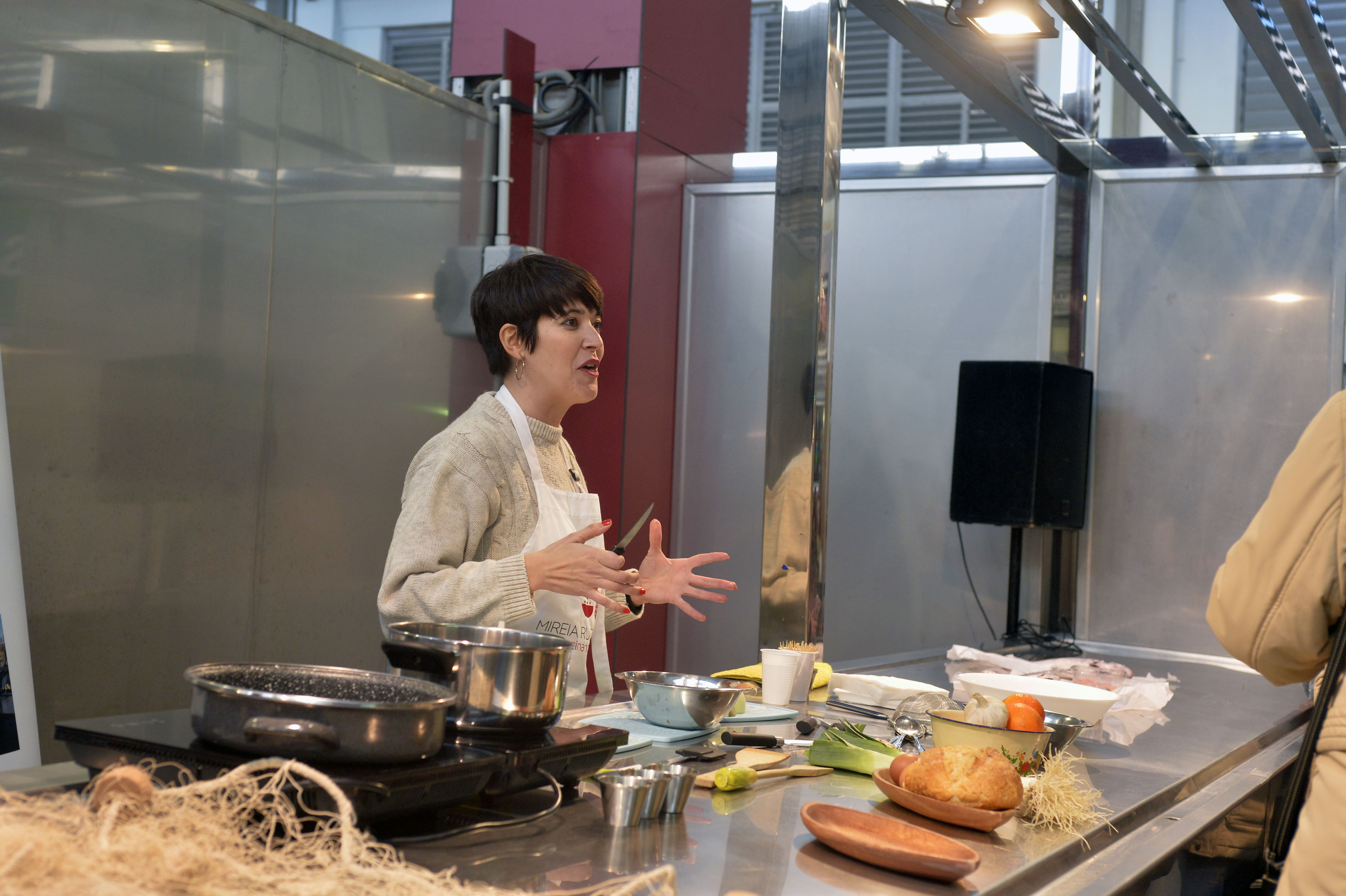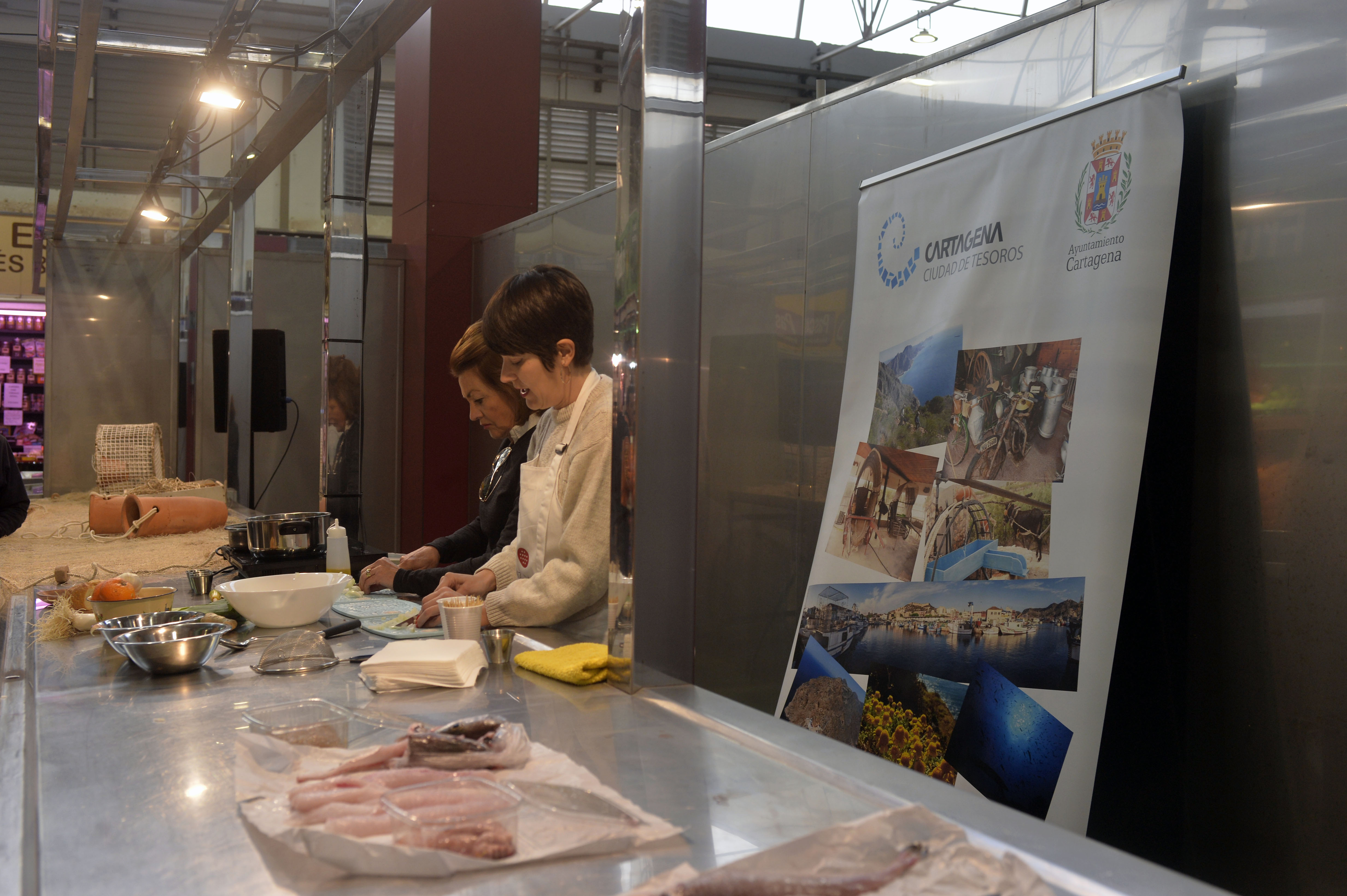 Asistentes al mercado de Santa Florentina han tenido la oportunidad de aprender cómo hacer una compra de pescado más responsable y asistir a un showcooking donde la chef Mireia Ruiz Manresa, participante de la tercera edición del programa de cocina de TVE MasterChef, ha enseñado cómo preparar especies de pescado local de Cartagena.