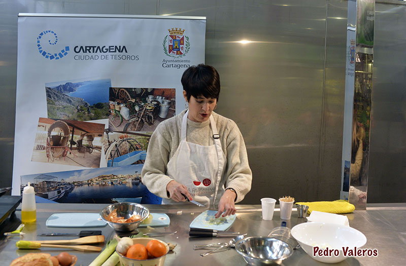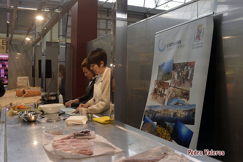 Fue el nombre de la actividad desarrollada en el Mercado de Santa Florentina, dentro del programa 'Cartagena con la pesca sostenible', organizada por Ayuntamiento y Asociación Columbares, que tiene como objetivo acerca a la ciudadanía la pescadería artesanal. La cocinera Mireia Ruiz Manresa, participante de la tercera edición del programa de cocina de TVE MasterChef y gerente del proyecto 'Cocinando sonrisas' de 'educocina', llevó a cabo una demostración de elaboración de productos ante el público ('show-cooking', en inglés).