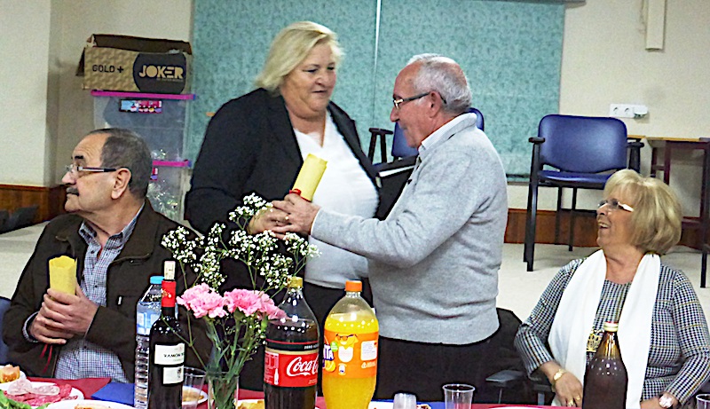 Después de la entrega de placas de reconocimiento a su fidelidad, y de un ramo de flores a sus esposas, se ha celebrado el acontecimiento con una merienda en la que han participado numerosos socios que han querido participar en el merecido homenaje a los más antiguos.