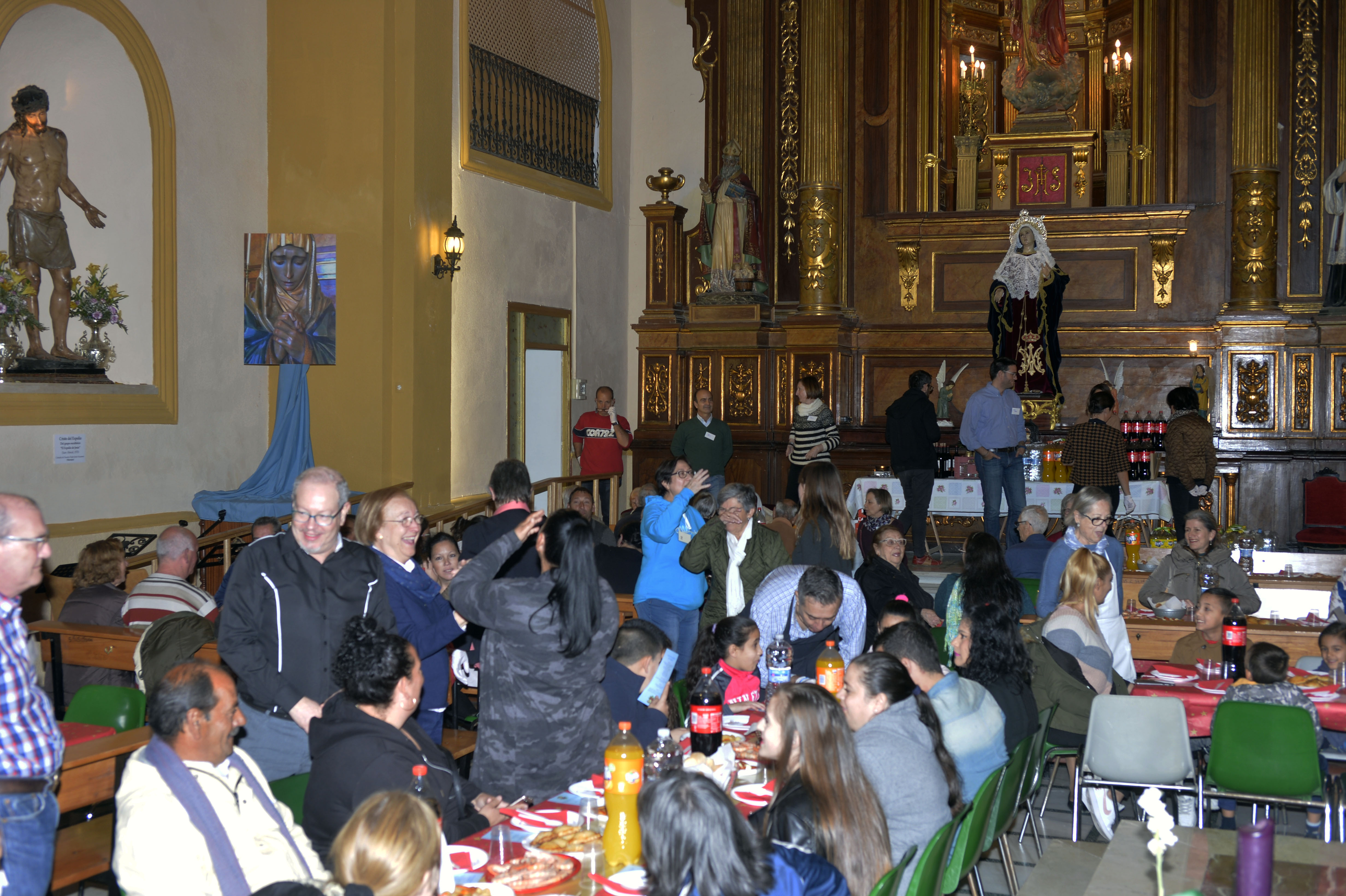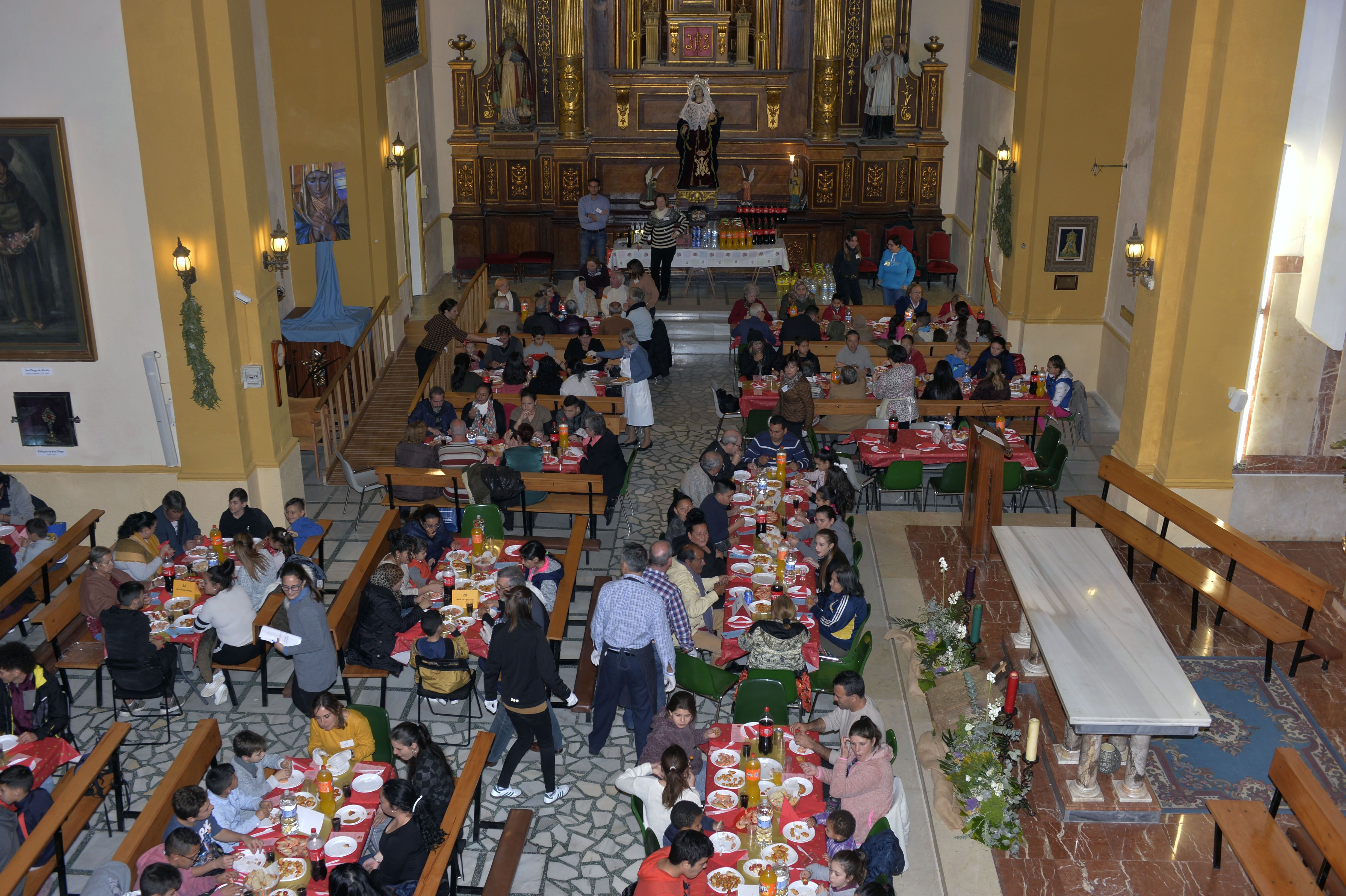 El templo parroquial de San Diego reunió a todos los participantes de los proyectos y programas del Centro Social Caritas San Diego, así como a mendigos y transeúntes de la zona, a una cena solidaria con motivo de las fiestas de la Navidad.