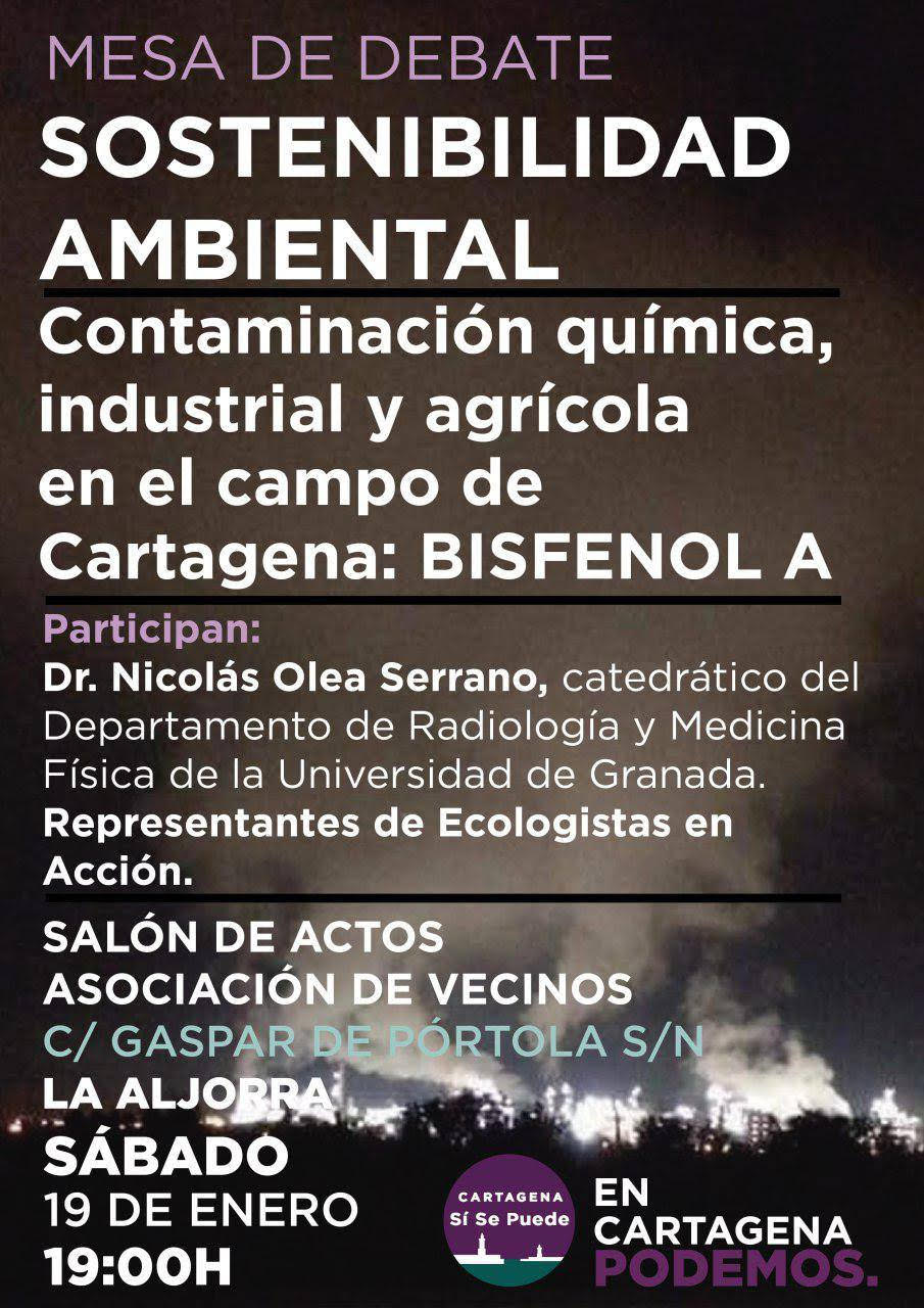 Nicolás Olea impartirá la charla 'Sostenibilidad Ambiental en Cartagena, contaminación química, industrial y agrícola en el campo de Cartagena. Bisfenol A' el sábado a las 19 horas en el Salón de Actos de la Asociación de Vecinos de La Aljorra.