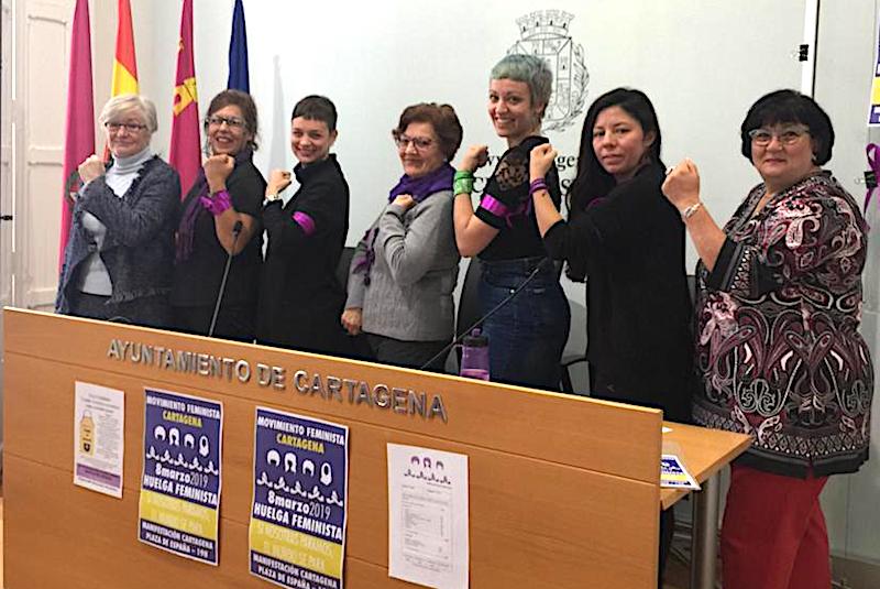 El Movimiento Feminista de Cartagena, compuesto por diferentes asociaciones feministas y otros movimientos sociales, promueve y secunda esta huelga de 24 horas, liderada por mujeres que marcharán por las calles de nuestras ciudades exigiendo 'igualdad y equidad'. Somos conscientes de las condiciones de precariedad actual y que muchas mujeres no podrán parar, a todas ellas las invitamos a que muestren su apoyo luciendo un brazalete morado durante toda la jornada el 8 de marzo.