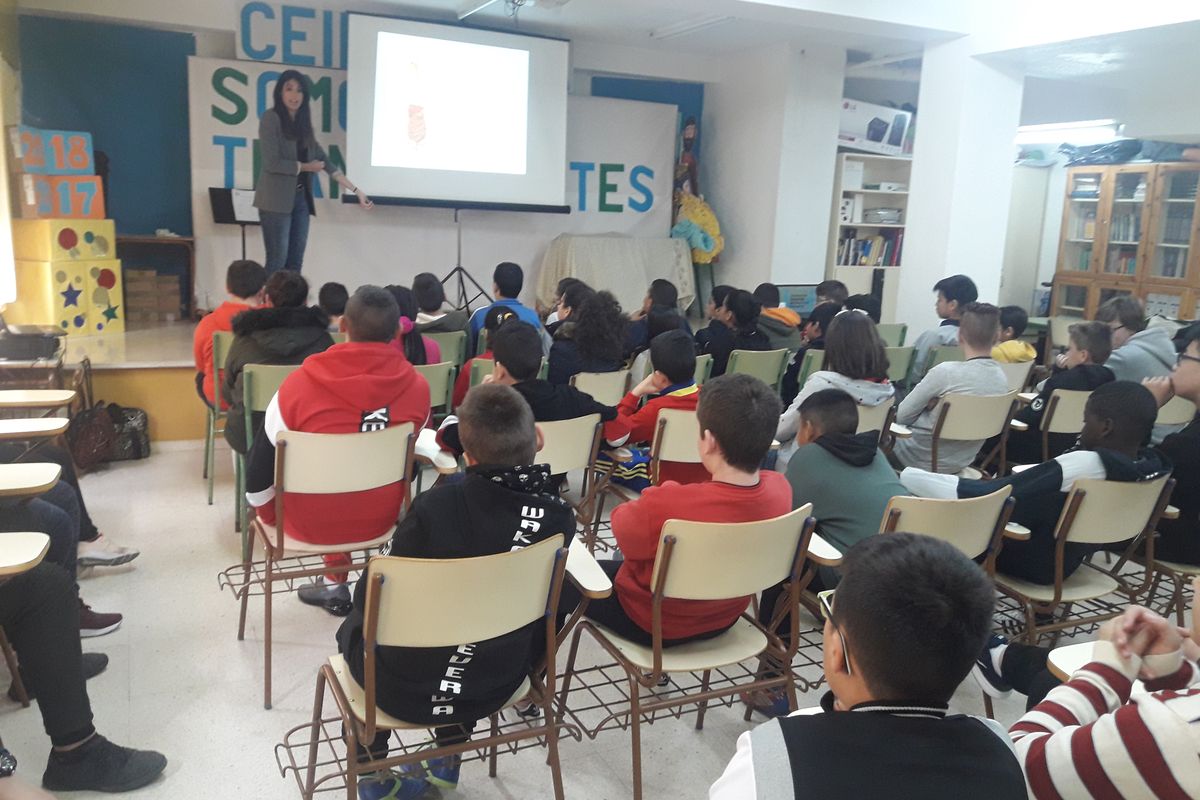 Continúan los encuentros-charla Deporte+Nutrición=Salud en los centros educativos dentro de las actividades que organiza el Programa ADE de Concejalía de Deportes. En esta ocasión el colegio Mastia fue este lunes el lugar de encuentro entre los alumnos de 5º y 6º de primaria con Lorena Luján, dietista-nutricionista clínico deportivo, encargada de acercar y transmitir la necesidad de crear y mantener hábitos saludables como medio fundamental en el desarrollo de la persona, unido al complemento de la práctica deportiva.