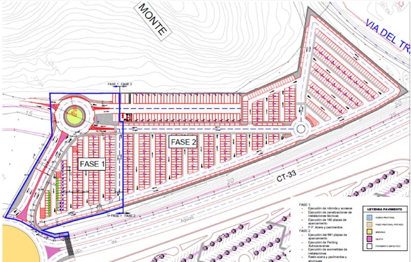 Imagen de los terrenos donde se anunció que iría ubicada el área de aparcamientos gratuitos del hospital Santa Lucía. Las obras están paradas desde principios de año y ya hay quien duda sobre cuándo se reactivarán.