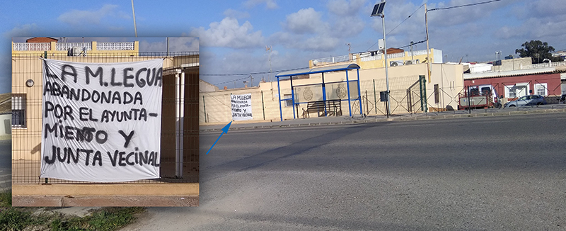 Esta pancarta ha sido colocada por los vecinos de la Media Legua junto a la carretera para expresar más atenciones por parte de las autoridades.