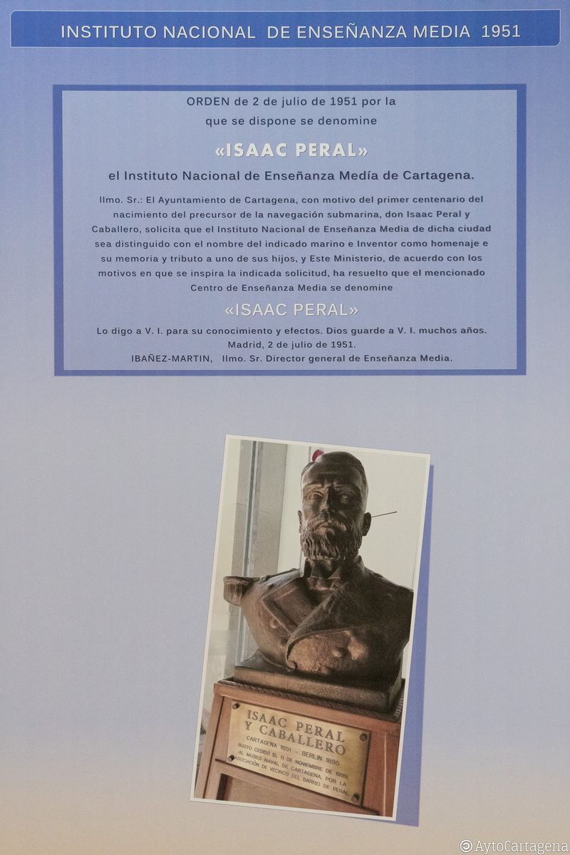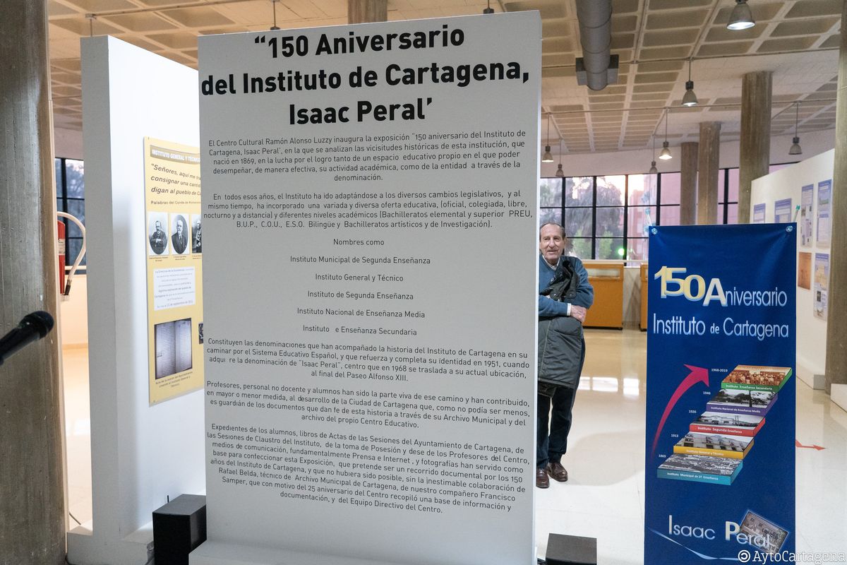 El Centro Cultural Ramón Alonso Luzzy ha acogido la inauguración de la exposición sobre el 50 aniversario del IES Isaac Peral. La encargada fue la concejala de Educación, Mercedes García. Los visitantes pudieron ver los documentos escolares y fotografías del 50 aniversario de las actuales instalaciones y del 150 aniversario de la Educación Secundaria en Cartagena.