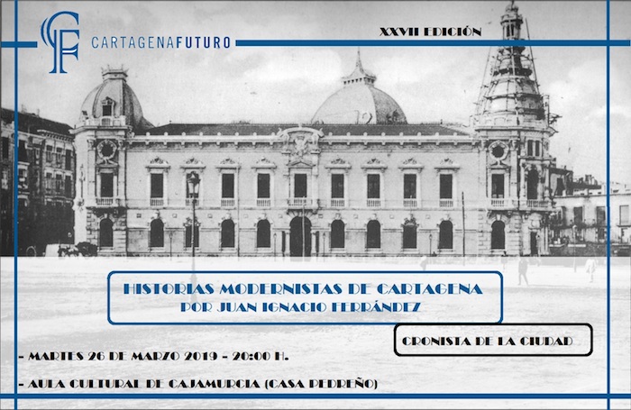 El cronista oficial de Cartagena, Juan Ignacio Ferrández, protagonizará mañana, 26 de marzo a partir de las 20:00 horas en el Aula Cultural de Cajamurcia (Casa Pedreño, Icue), la XXVII edición de Los Culturales de Cartagena Futuro, en esta ocasión, bajo el título ‘Historias Modernistas de Cartagena’.