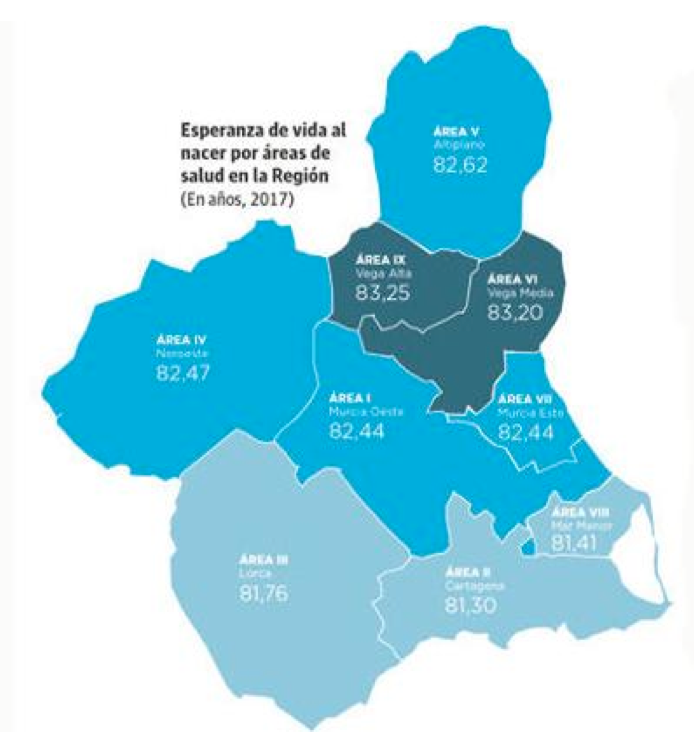 Según el último informe del Servicio de Epidemiología sobre esperanza de vida y mortalidad. Como ejemplo tenemos la publicación en “La Verdad” Javier Pérez Parra. Lunes, 18 febrero 2019: Cartagena se sitúa a la cola en esperanza de vida en la Región. https://www.laverdad.es/murcia/cartagena-situa-cola-20190217004349-ntvo.html