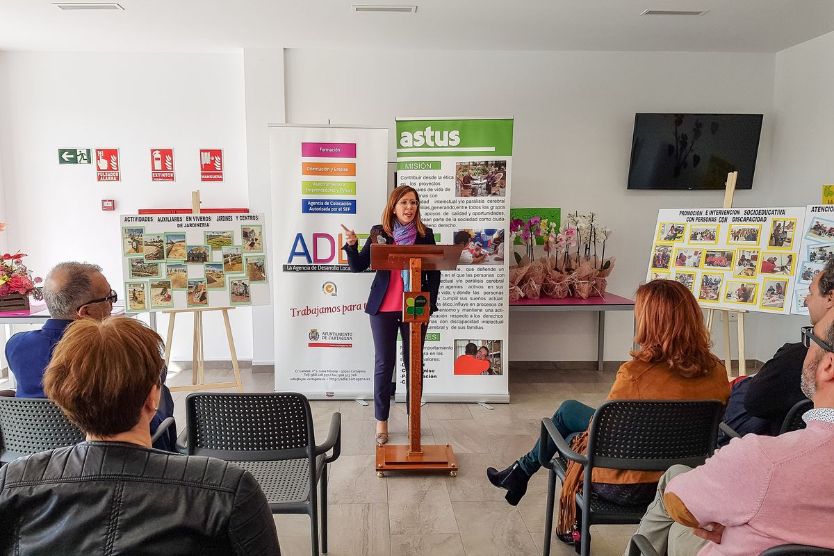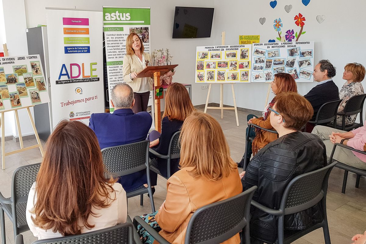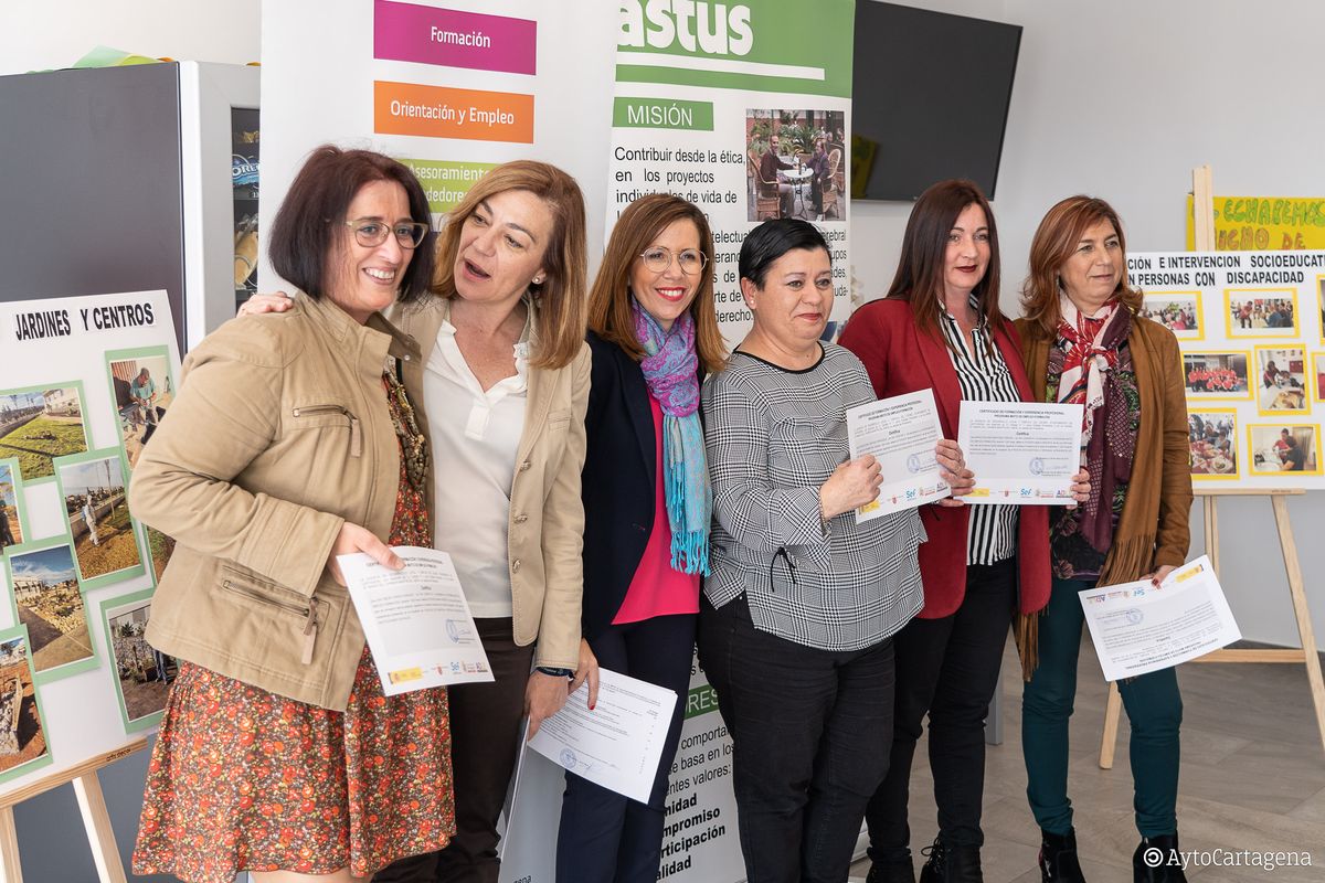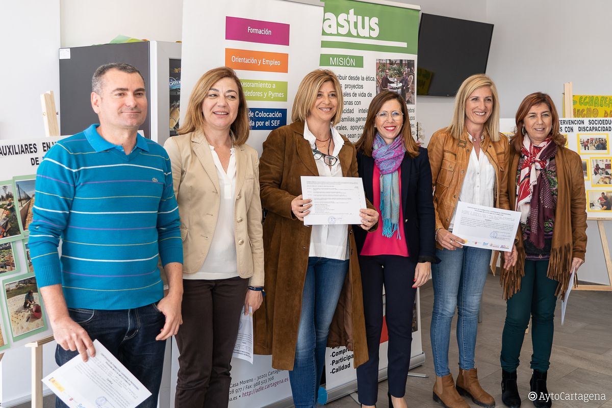 La graduación ha contado con la presencia de la alcaldesa de Cartagena, Ana Belén Castejón, la concejala de Estrategia Económica, Carmen Martín, el gerente de la ADLE, Fulgencio Cerón, la directora del SEF, Severa González y el presidente de la Asociación Tutelar de la Persona con Discapacidad (ASTUS), Joaquín Barberá.