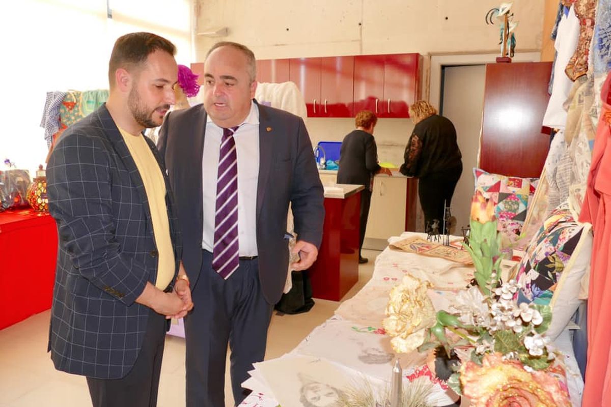 Los concejales de Igualdad, David Martínez, y de Servicios Municipales, Juan Pedro Torralba, no quisieron perderse la inauguración de esta exposición en la que pudieron compartir la jornada con las mujeres de la asociación y disfrutar de sus trabajos.