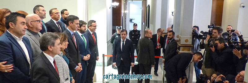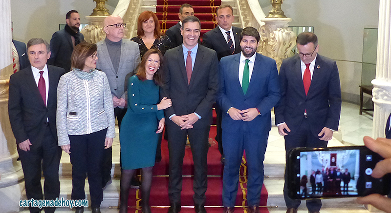La presencia de un presidente del Gobierno de España en Cartagena no es un hecho habitual. Hoy lo ha hecho Pedro Sánchez, entre grandes medidas de seguridad, labor de la que se ha encargado alrededor de un centenar de personas (pinchar aquí). Los coches que portaban a la comitiva de autoridades ha llegado casi a las escalinatas del Palacio Consistorial, donde esperaban la primera autoridad municipal, Ana Belén Castejón, para dar la bienvenida a Sánchez. También llegaban el presidente de la Comunidad Autónoma, Fernando López Miras; el delegado del Gobierno en la Región de Murcia, Diego Conesa; y el diputado nacional Pedro Saura.