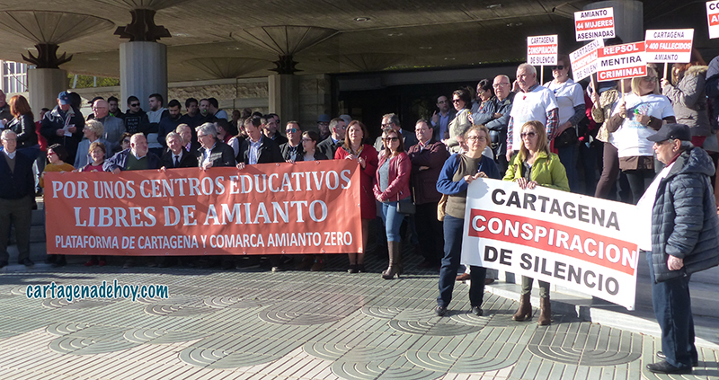 Afirma que habrá más de 180 centros afectados por el amianto, de los que 34 están en el municipio de Cartagena, “y otro buen número en la comarca, cuando resulta que en Murcia, con casi el doble de población, hay 32”. Después se dirigió a los asistentes diciendo que el amianto “es un terrorista silencioso que mata, un asesino. No se puede consentir que se mantega esta situación con menores de edad a los que simplemente mandamos al colegio”, ha expuesto.