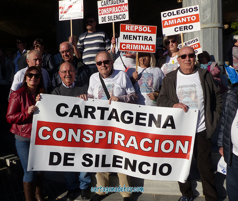 Ricardo Torregrosa Marín, presidente de perjudicados y afectados por el amianto ‘Apena’, ha dicho que están haciendo una labor de concienciación “hacia una sociedad que está dormida” y que el amianto “provoca una media de doce muertes de cada año, de los que nueve son trabajadores y tres esposa por contaminación doméstica al lavar sus vestuarios, que encima no tiene reconocida su derechos jurídicamente. Cartagena está en cabeza de las muertes por mesotelioma, un cáncer que sólo provoca el amianto”.