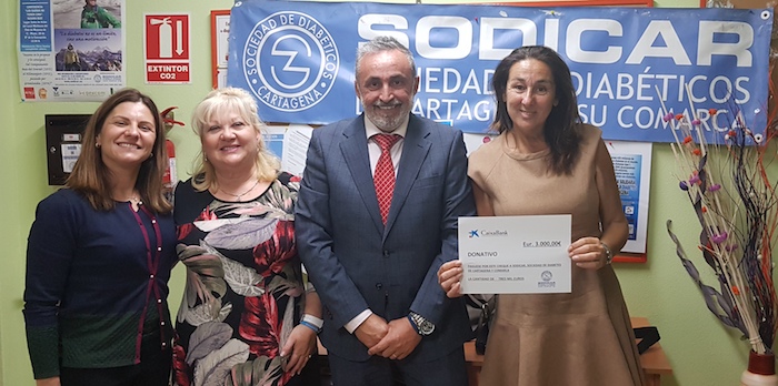 Fernando Izquierdo, director de la oficina Store de La Caixa de la calle Mayor de Cartagena, ha visitado la sede de la Sociedad de Diabetes de Cartagena y Comarca para hacer entrega de un donativo de 3.000 euros, en nombre de la Fundación La Caixa, a María Dolores García, en calidad de presidenta de la Asociación.
