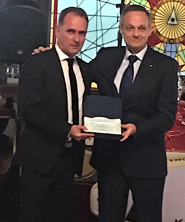 Las distinciones fueron entregadas por el presidente, Mariano Ugarte Romero, a la Escuela de Infantería de Marina General Albacete y Fuster, que recogió su comandante-director, Coronel Enrique Montero Ruiz; la Autoridad Portuaria de Cartagena, recogido por su presidente, Joaquín Segado Martínez; y la Asociación Benéfica Cartagena por la Caridad, que recibió su presidente, Matías Barco Cabrera, a quien se observa en la imagen adjunta.