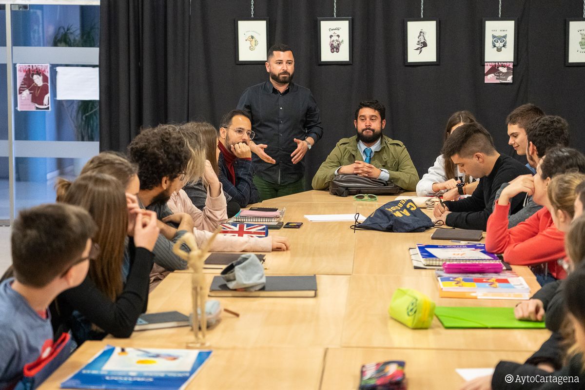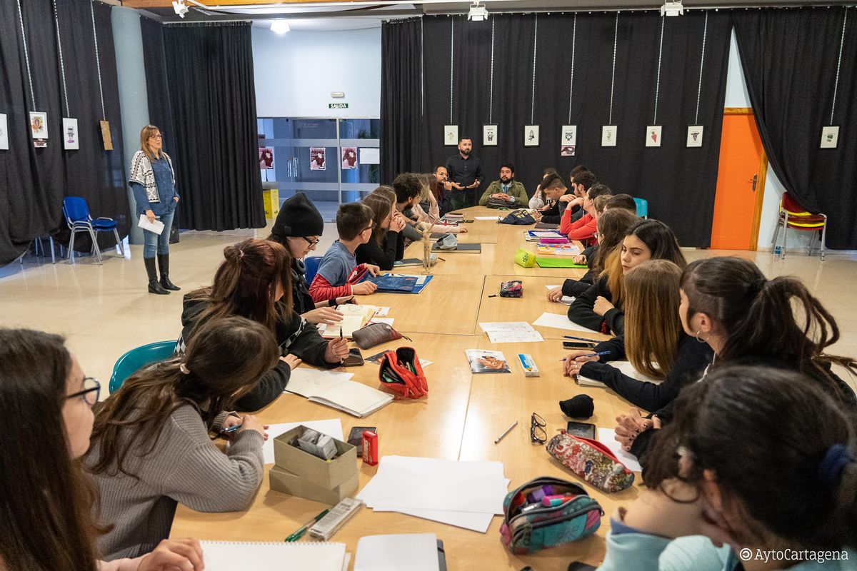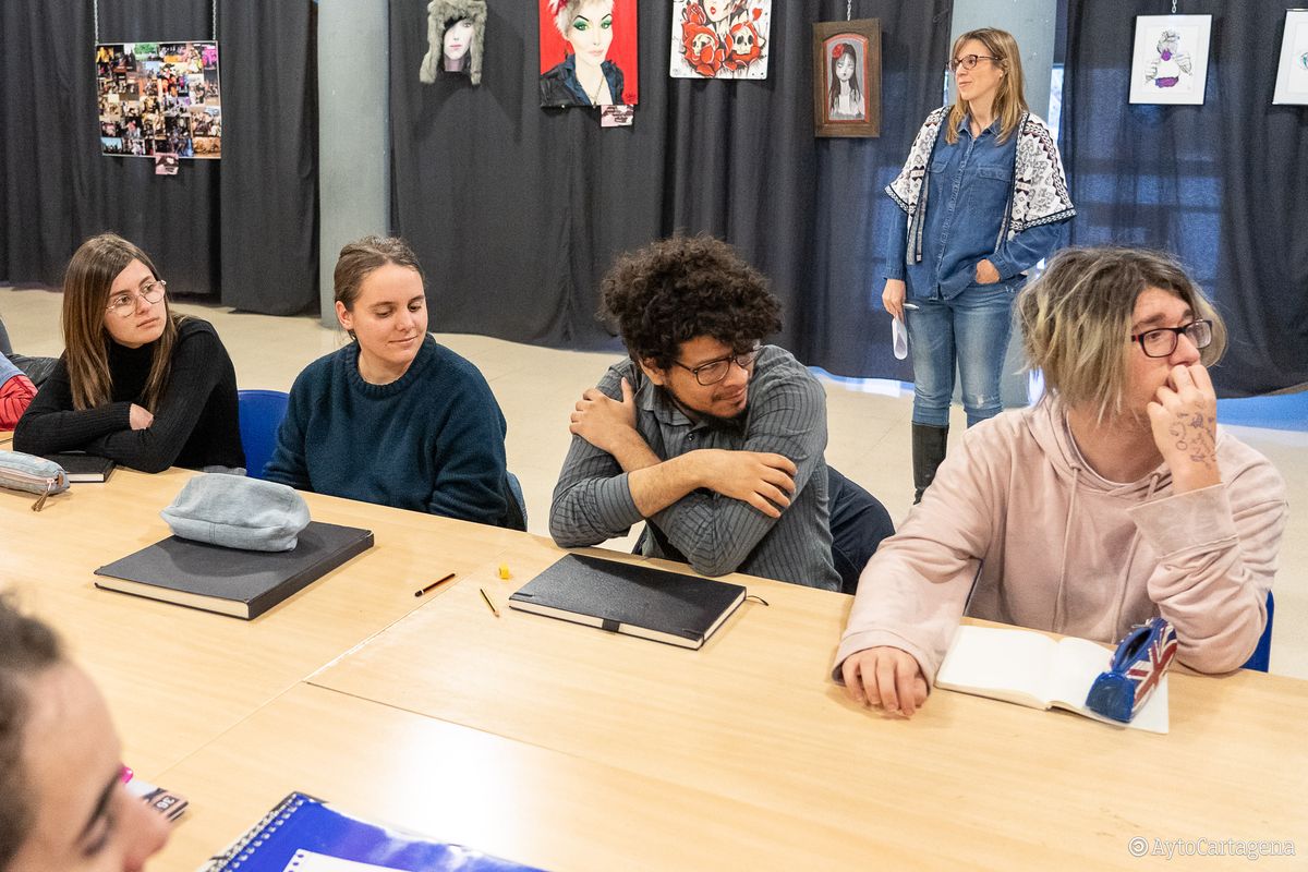 La dibujante estadounidense estuvo en el Centro de Recursos Juveniles de Cartagena con una actividad en la que participaron jóvenes inscritos en comités de lectura del Premio Mandarache así como en el taller de creación literaria Libreta Mandarache, estudiantes del bachillerato artístico y miembros del taller de cómic de Barrio Peral. Además, contó con la presencia del concejal de Juventud, David Martínez.
