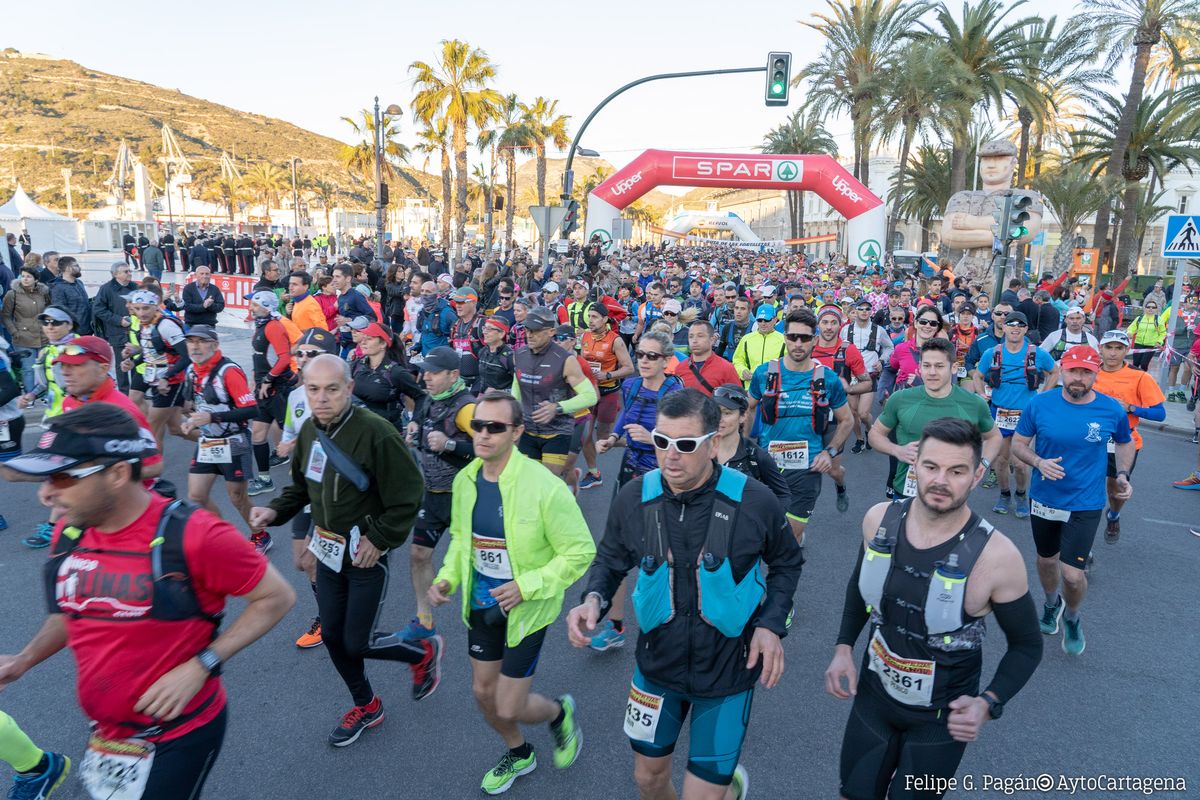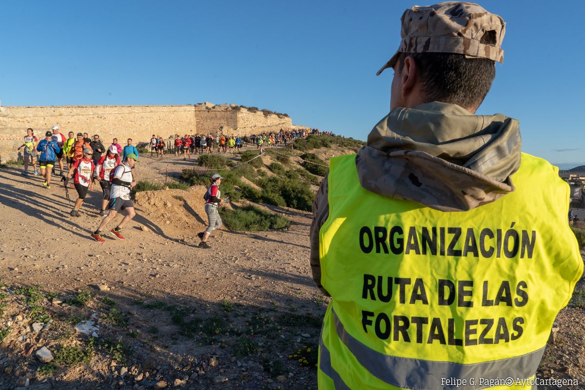 Cartagena se convirtió el sábado en una gran pista de atletismo. Tres mil ochocientos corredores, la mayoría no dedicada al mundo del atlestismo, participaron en la décima edición de la Ruta de la Fortalezas. Una prueba deportiva convertida en referente regional y nacional, organizada por la Armada y el Ayuntamiento de Cartagena y en la que se recorre 54 km de montañas de la ciudad.