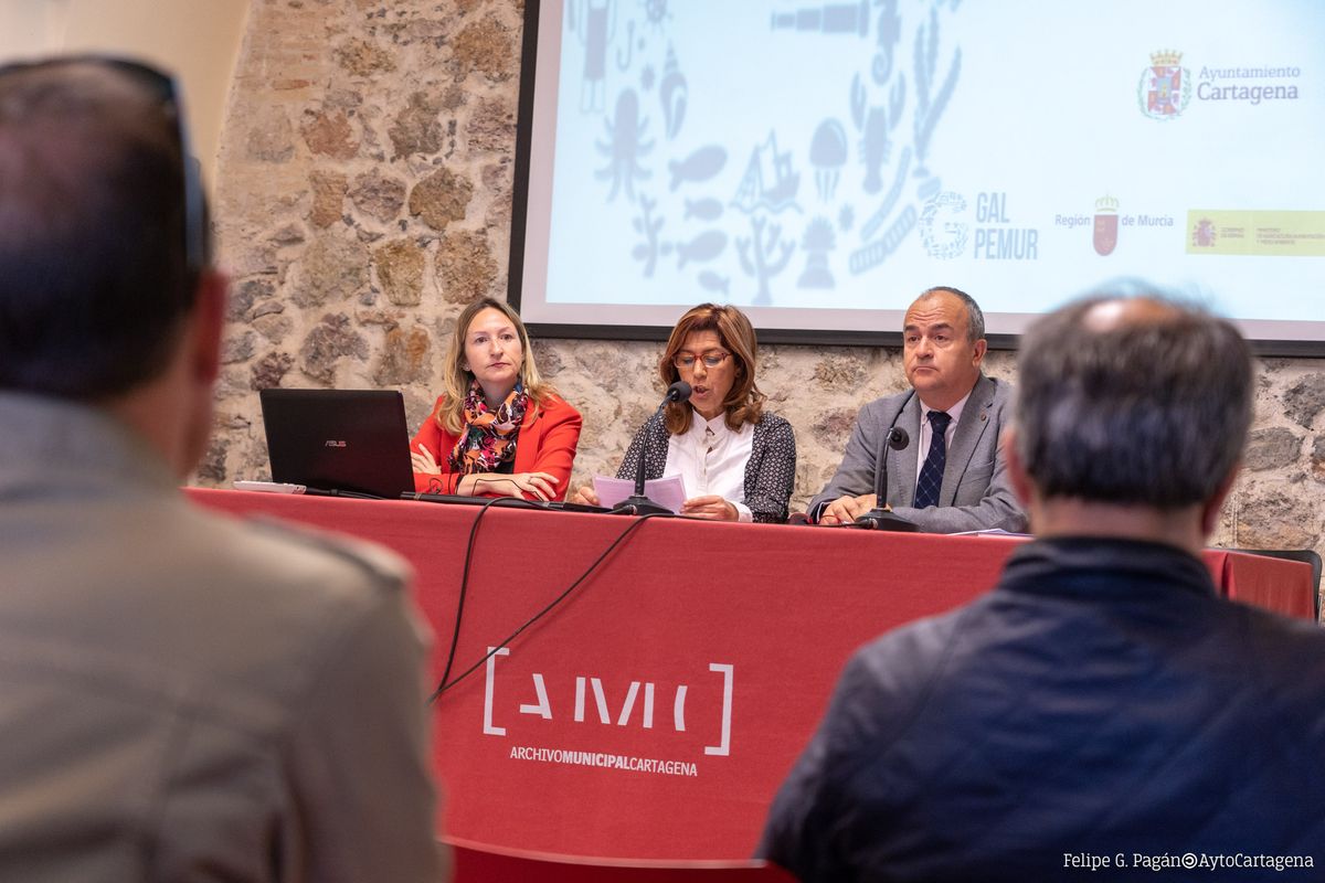 La concejala de Estrategia Económica del Ayuntamiento de Cartagena, Carmen Martín del Amor, junto a la gerente de Galpemur, Inmaculada Torres, y al Director General de Agricultura, Ganadería, Pesca y Acuicultura, Francisco González, han presentado la convocatoria 2019 de ayudas del Fondo Europeo Marítimo y de Pesca (FEMP), enfocadas a la diversificación y el desarrollo sostenible del litoral de la Región de Murcia.
