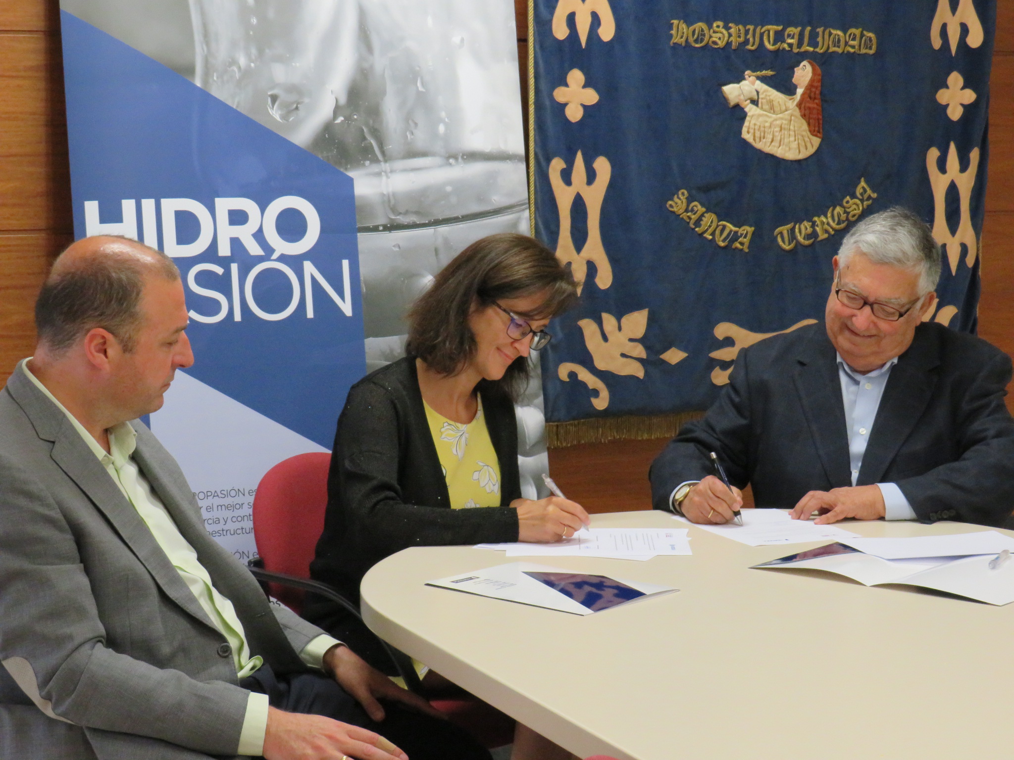 La firma ha tenido lugar en las instalaciones de la Hospitalidad de Santa Teresa, por parte de Inmaculada Serrano, Directora General de Hidrogea y Vicente Villar, Director de la Fundación, acompañados por Andrés Martínez, Gerente de