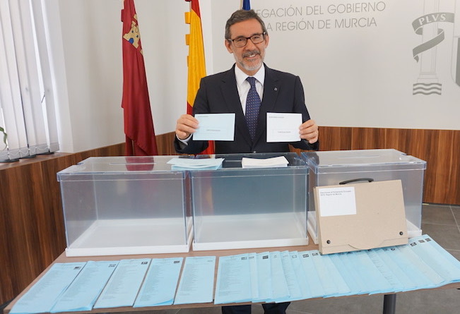 Francisco Jiménez, delegado del Gobierno en la Región de Murcia, ha ofrecido esta mañana todos los detalles de este nuevo proceso electoral, en el que habrá 1687 mesas, con 5.061 miembros y 684 representantes de la Administración, distribuidos en 581 colegios electorales que estarán custodiados por los cerca de 2.000 agentes de Guardia Civil y Policía Nacional, a los que hay que sumar los efectivos de las policías locales.