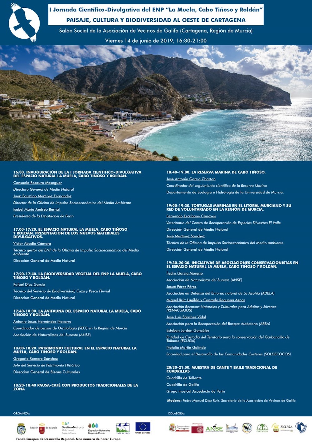Se celebrará el próximo viernes bajo el título 'Paisaje, cultura y biodiversidad al oeste de Cartagena', entre las 16.30 y las 21 horas en el salón de la asociación de vecinos. Se tra de una iniciativa de la dirección general de Medio Natural de la comunidad Autónoma centrada en el ENP de Sierra de La Muela, Cabo Tiñoso y monte Roldán.
