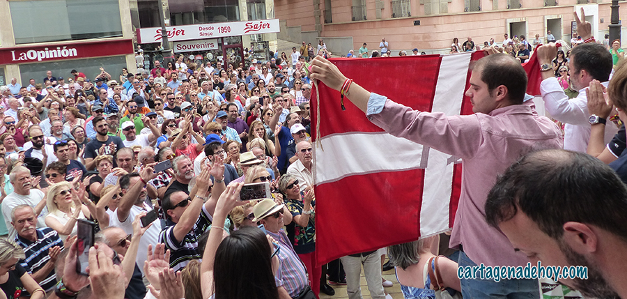 José López se ha dirigido después a lo alto de la escalinata, desde donde ha escuchado gritos de "¡Alcalde, alcalde!" y de "¡Pepe, estamos contigo!". El líder de Movimiento Ciudadano, tras afirmar que él no ha convocado esta concentración, ha hecho comentarios negativos sobre Noelia Arroyo y sobre Ana Belén Castejón, al igual que a sus respectivos partidos: "Cartagena se ha convertido para PP y PSOE en la vaca a la que sacan sangre porque ya no da más leche". Otro comentario es que el municipio lleva 40 años "de negarnos el pan y la sal" en los que los beneficios de esta tierra "van a la puta Murcia. Nos han hecho más pequeños esta gentuza del PSOE y del PP". Aseguró que en su etapa anterior fue víctima de grandes concesionarias y de los políticos de Murcia, para después expresar que quería ser el regidor para que a Cartagena "se la escuche más allá del Puerto de la Cadena". En algún momento ha levantado la mano con la 'V' de victoria y en otras con el puño cerrado, además de se mostrada en diversos momentos la bandera de la capital marítima de Cartagena.