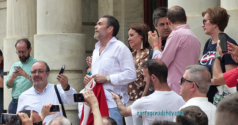 A diferencia de ayer tarde, esta vez sí se han visto políticos, en este caso a los concejales de Movimiento Ciudadano de Cartagena (el partido más votado en los comicios del 26M), encabezados por José López.