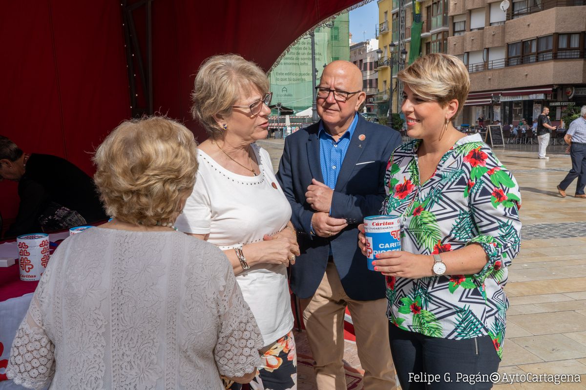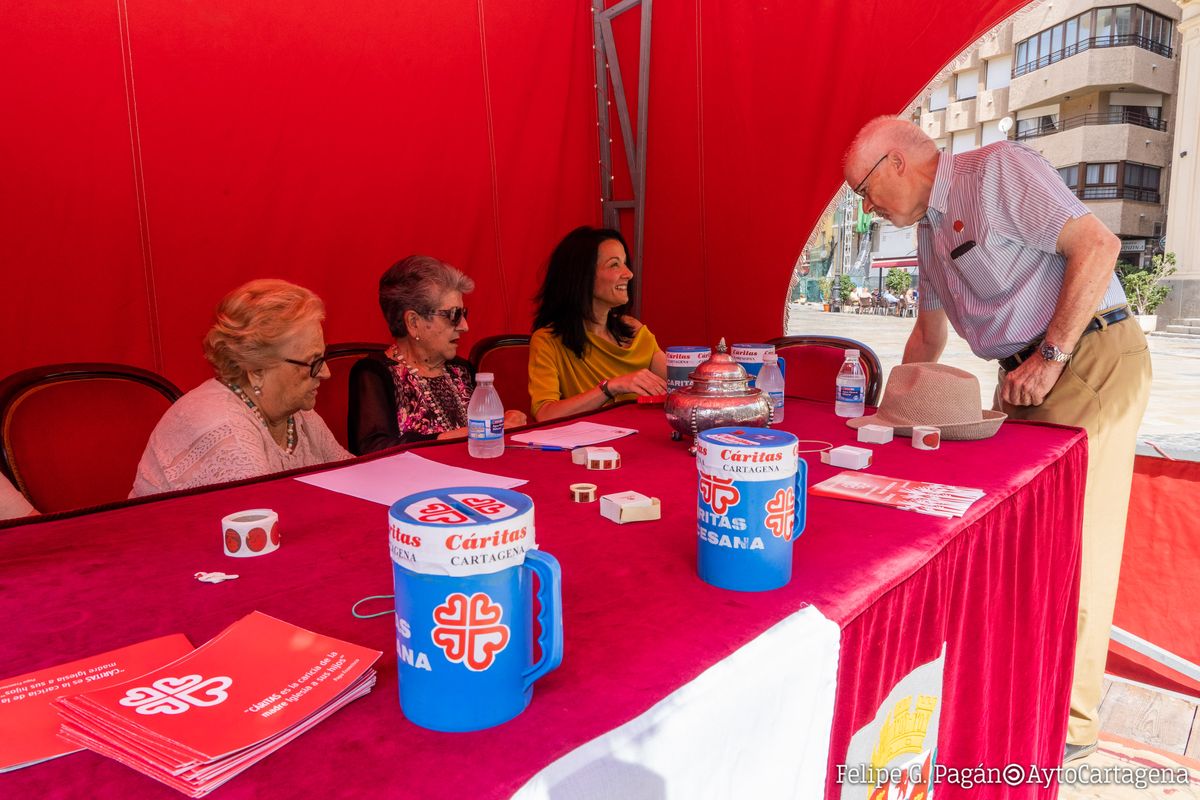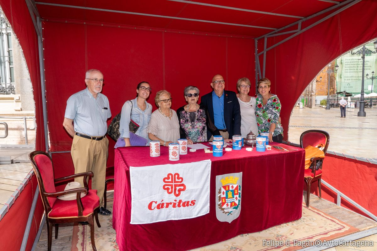 Hoy se celebra la festividad del Corpus Christi. Para conmemorar esta fecha, Cáritas va a instalar diferentes mesas petitorias por distintos barrios de la ciudad de Cartagena. Una de ellas ha estado situada en la Plaza del Ayuntamiento de 10 horas a 13:15 horas. La cantidad recaudada en esta mesa petitoria ha sido de 385,60 euros.