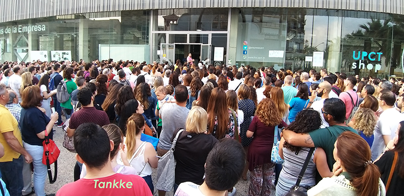 Situación de la entrada al edificio de la Facultad de Ciencias de la Empresa de Cartagena a las ocho de esta mañana