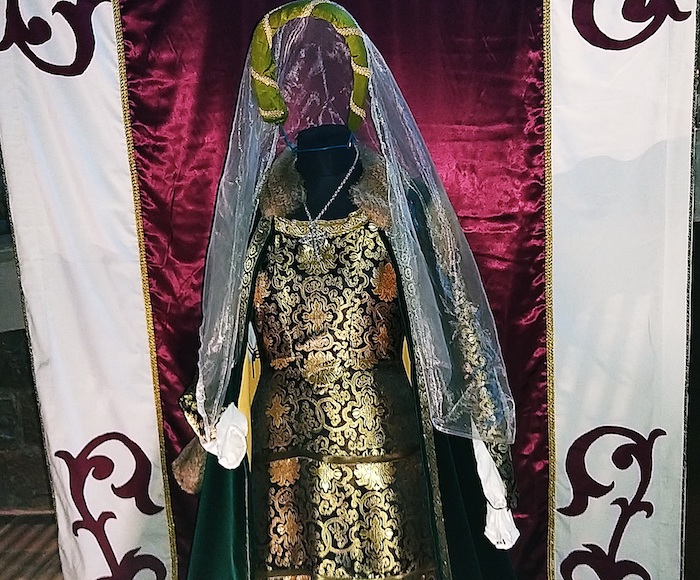 El castillo de la Concepción sigue acogiendo la exposición y teatralización centrada en la figura en la reina que reunió a los reinos hispánicos y que traslada a los que acuden a la Edad Media a través de hechos históricos y de los vestuarios utilizados en la serie que ofreció TVE. El papel de Isabel lo encarna la actriz cartagenera Miriam Ortas, a quien se observa con María José Díaz, quien quedó encantada con la visita.