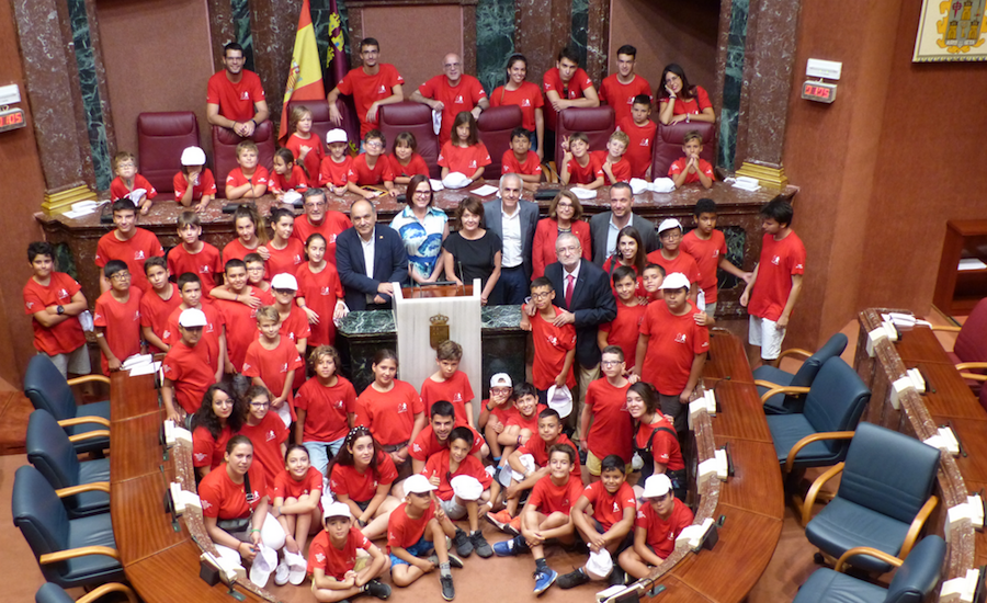 Los cincuenta y cinco niños y veinticinco monitores, con sus camisetas rojas, han llenado de color y vida el hemiciclo de la Asamblea y emplazado a sus señorías a “pelear”, para que en Murcia, como en Galicia, la Comunidad Autónoma financie un tratamiento que permite a los niños hemofílicos que se pinchen cada quince o veinte días en lugar de cada dos o tres como en la actualidad.