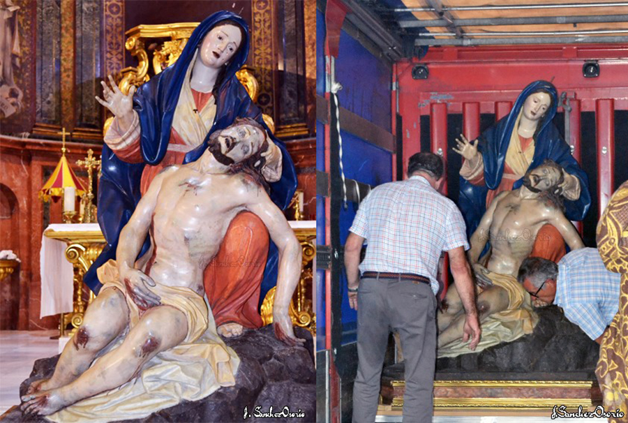 La imagen ha sido trasladada a Murcia para su revisión y restauración, como sucedió hace veintiséis años, en la vez anterior en que se llevó al taller de la Comunidad Autónoma.