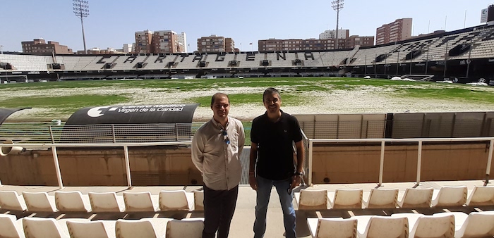 Esta mañana, el portavoz adjunto de MC Cartagena, Jesús Giménez, y el concejal de la formación cartagenerista, Ricardo Segado, se han desplazado hasta el estadio municipal Cartagonova tras hacerse eco de la inquietud de gran parte de la afición del F.C. Cartagena, alarmada por el lamentable estado del césped a menos de veinte días del inicio de la competición oficial.