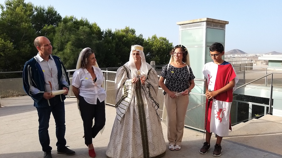 La cita en el Castillo de la Concepcióncon la televisiva ‘Isabel’ sigue siendo un éxito por la presencia de visitantes para conocer la exposición de vestuarios y enseres de la serie de televisión y para vivir la teatralización. La reina, que encarna Miriam Ortas, no ha dudado en posar con las tarjetas promocionales del diario de Cartagena y su gente, donde se han recogido varios artículos relacionados con esta muestra.