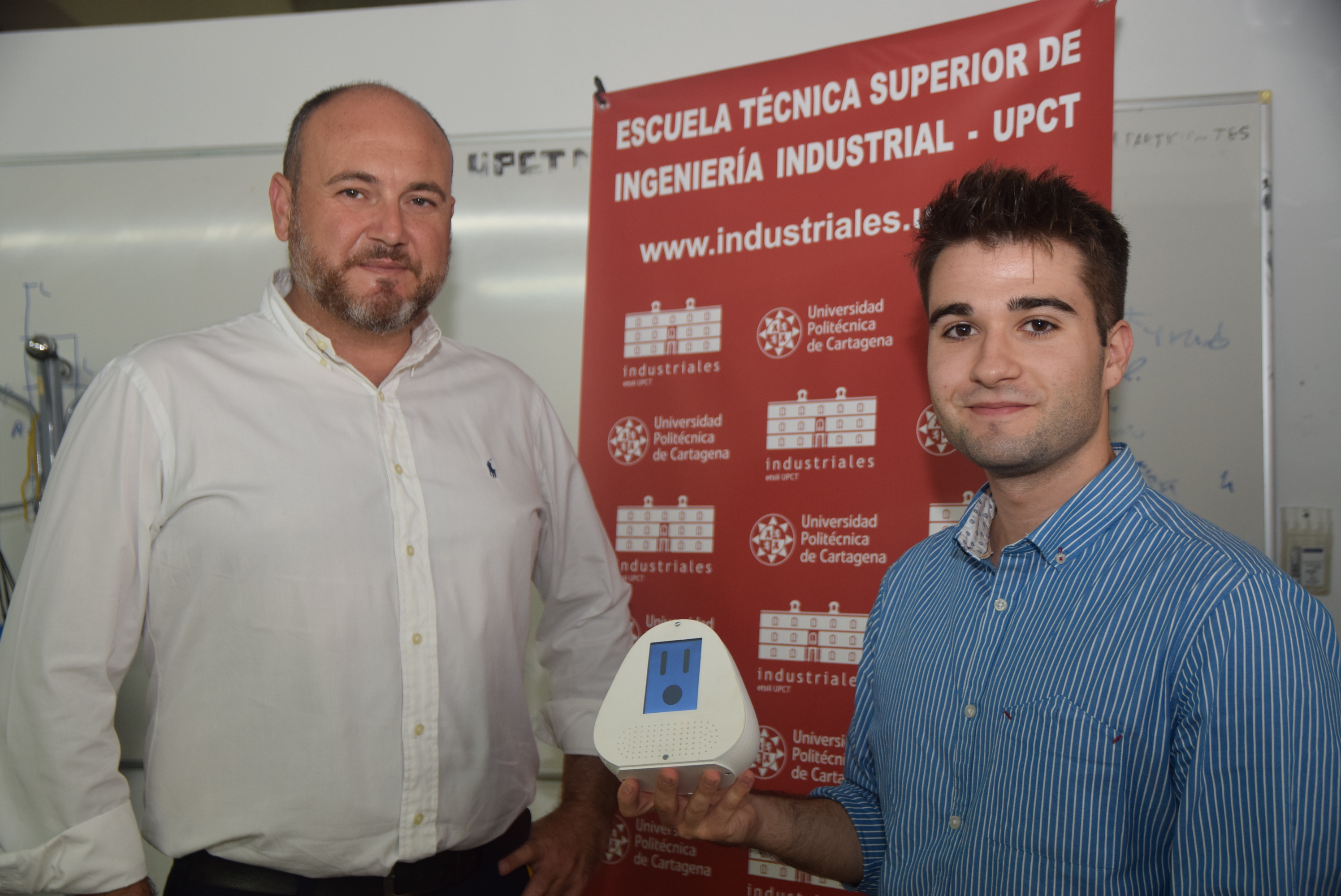 Un robot similar a un altavoz inteligente, que puede ayudar a reducir la soledad y combatir la neurodegeneración de personas mayores, es el nuevo prototipo diseñado por un alumno de la Escuela de Industriales de la Universidad Politécnica de Cartagena (UPCT). El dispositivo ideado por José Antonio Jiménez Viuda, estudiante de Tecnologías Industriales, puede interactuar con el paciente mediante lenguaje natural y una pantalla por la que puede mostrar emociones para lograr una comunicación más cercana, más empática.